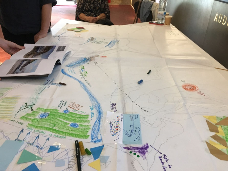 We imagine this workshop as an open and white space, where the inhabitants of the Baix ter can draw, build, represent the landscape they live. We see this workshop as an open possibility to involve all generations of inhabitants in the contribution of their own perception, stories, and visions of the landscape through the materials.